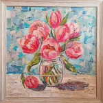 Колаж върху платно "Нежност", 2024 г. Автор: Дарина Гильова. Размер на платното 70/70 см. Рамкиран.