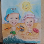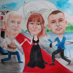 Карикатура по Ваша снимка. С рамка и готова за окачване. Срок за изпълнение 7-10 дни. Цената зависи от броя на нарисуваните лица: 1 лице - 200лв. 2 лица - 300 лв. 3 лица - 350 лв. 4 лица - 400 лв. 5 лица - 450 лв.